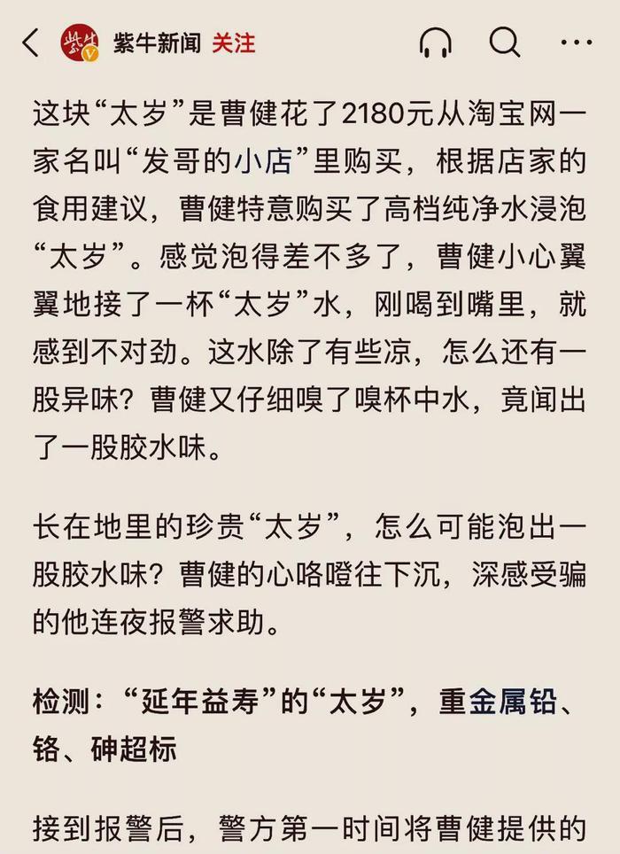 直到今天,有关“太岁水”中重金属超标的报道仍时有爆出