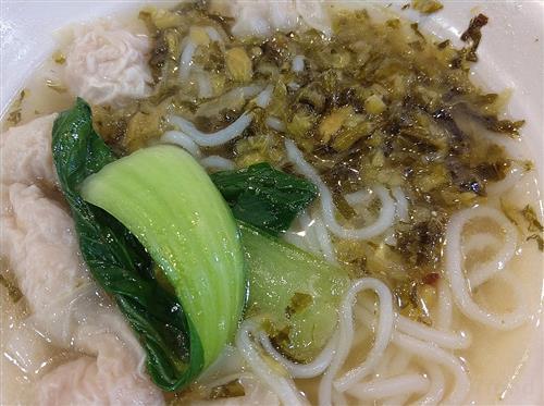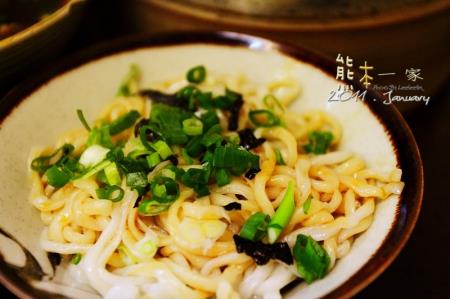 “金山拉面”是用精面粉经过反复揉、压、捏,最后拌以香油或生油,拉成条状,再放在掺有香菇、虾仁、排骨、鱿鱼、黄瓜、绿笋等佐料的滚汤中煮熟而成。