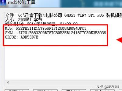 4、添加好文件之后,md5校验会自动开始计算。计算的时间,根据文件的大小和压缩包内的数量不同。稍等片刻,校验好了之后,会出现当前下载的MD5和sha1值。对比一下之前的那个备份的,如果相同表示文件没有被修改过,如果不同,那建议不要使用。如图所示: