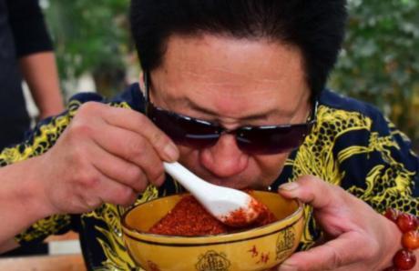 吃了一口后,李永志就发现,这辣椒面还挺好吃,随后竟然将一碗辣椒面全都吃完了。