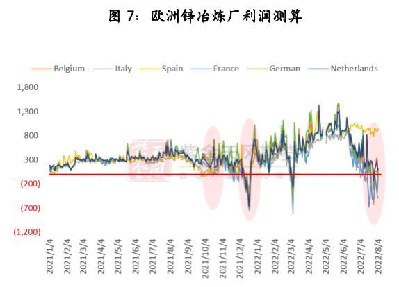 近期欧洲天然气价格再度飙升,目前法国、意大利、荷兰以及德国等地区冶炼厂理论利润已转为亏损。从冶炼厂利润角度考量,采用实时电价的企业面临的压力不容小觑,一方面今年以来国内外锌精矿供应偏紧的格局在不断打压加工费,造成了冶炼厂主要收入难以增长;另一方面,不断跳跃的电价对冶炼企业的成本造成严重威胁,冬季能源价格将面临更大的挑战。