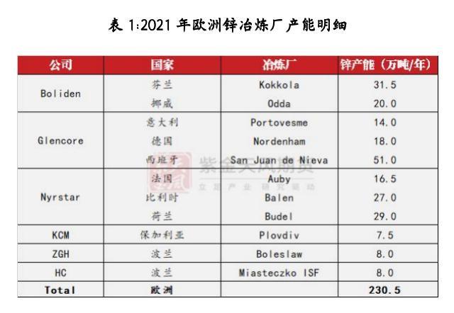 目前欧洲锌冶炼厂的情况