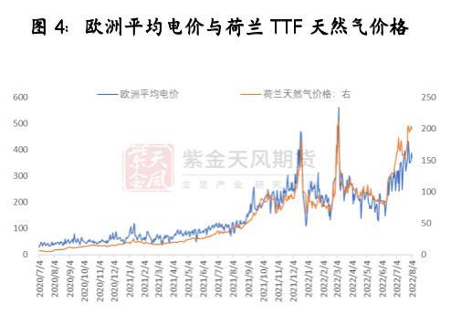 与上一轮欧洲天然气价格飙涨推动锌冶炼厂成本上升的情形来对比。去年10月新星宣布减产,当时荷兰TTF刷新高位达到117.9欧,同时欧洲电价平均上涨到150-250美元/千兆时附近,刷新了当时的最高电价,当时测算冶炼厂的理论利润基本是刚打到了亏损线附近。随后电价回落不到一个月,偏低的欧洲天然气库存无法满足过冬取暖需求,天然气再度飙升至180.68欧,电价再创新高,嘉能可宣布将计划进行意大利地区冶炼厂的检修,锌价再度拉升。