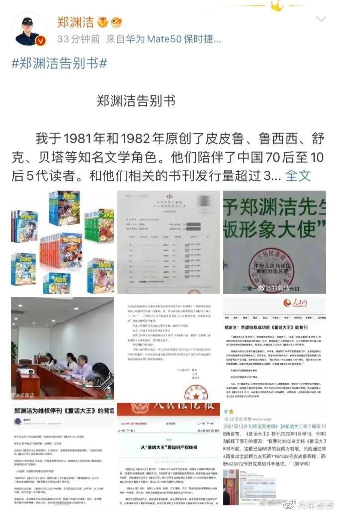 近日,素有“童话大王”之称的作家郑渊洁在微博发布了一封告别书,宣布永远不再发表新作。在这封告别书中,他指出维权方面的困难已经让他无法坚持写作。这个消息让许多读者感到意外,也引起网友的热议。