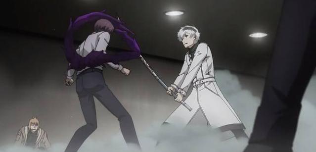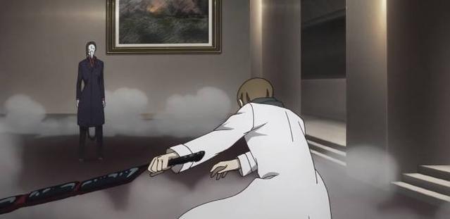 铃屋什造VS绚都女装大佬铃屋在没有「杰森」的情况下,只能一边牵制绚都,即使是这样,也能够跟绚都打得有来有回。当然绚都也没有用全力,只需要掩护BIGMADAM的撤离就行。所以两个人就开始你扔几把小刀,我射几发赫子的回合制战斗。
