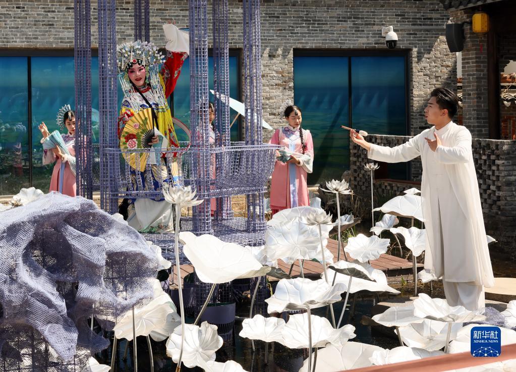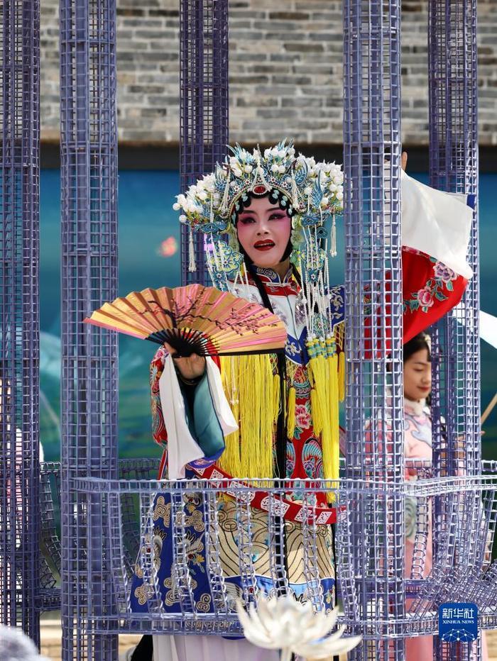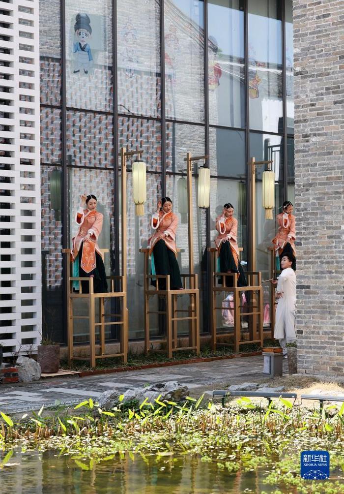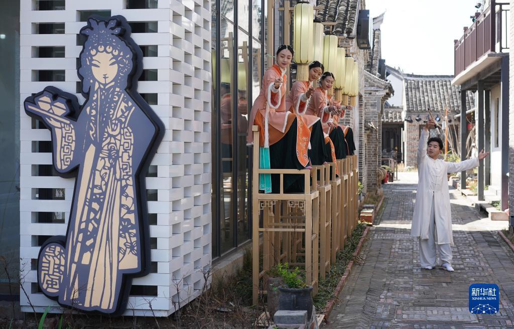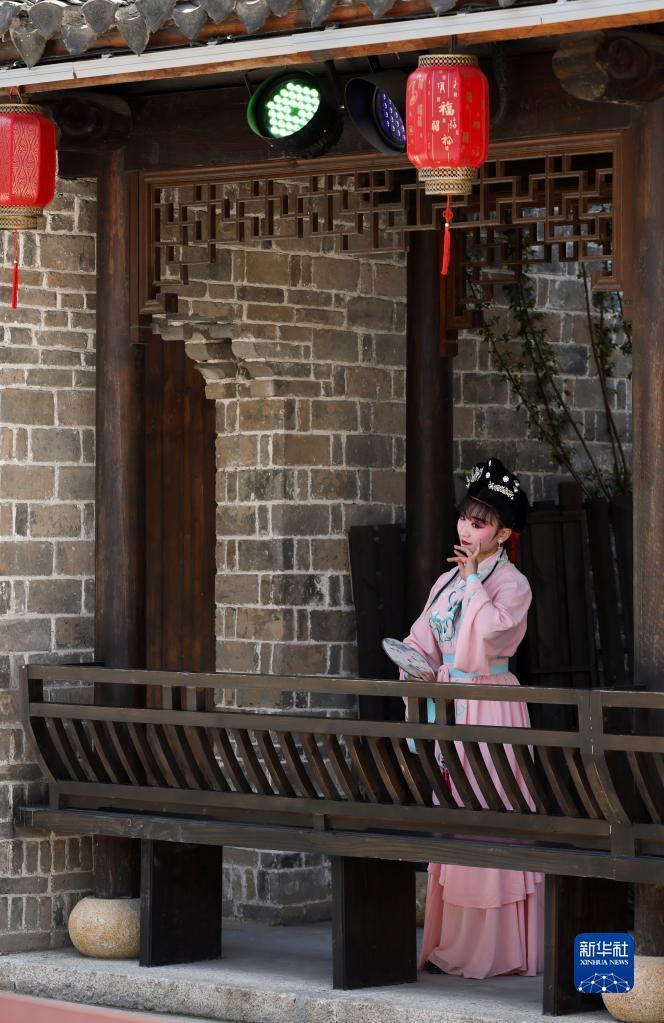 新华全媒+|江苏建湖:走进淮剧小镇 感受非遗魅力---4月1日,演员在位于江苏省盐城市建湖县的淮剧小镇表演淮剧。
