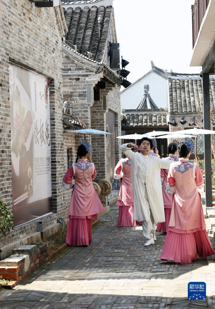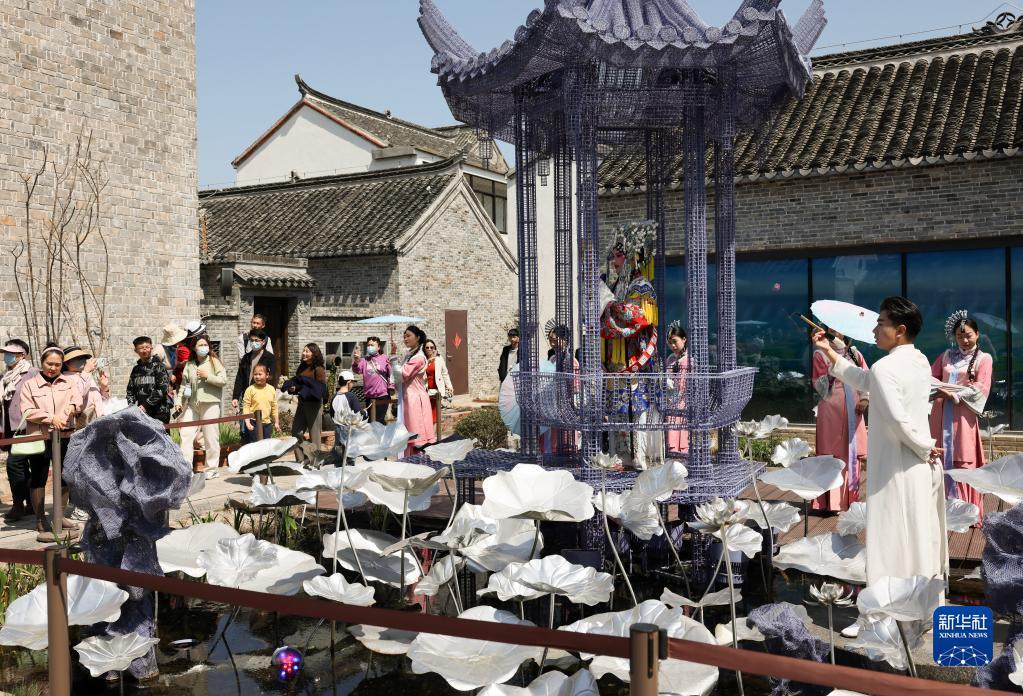 4月1日,演员在位于江苏省盐城市建湖县的淮剧小镇表演淮剧。淮剧又名江淮戏、淮戏等,是一种古老的地方戏曲剧种,被列入第二批国家级非物质文化遗产名录。2017年,江苏省盐城市建湖县被命名为“中国淮剧之乡”。近年来,建湖县高度重视淮剧保护传承工作,依托沙庄古村,坚持“生态为本、文化为魂、文旅融合”的发展理念,打造集非遗传承、文化体验、沉浸演出等为一体的淮剧小镇,成为当地文旅新地标。新华社记者 李任滋 摄