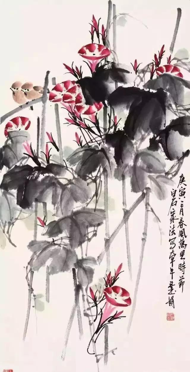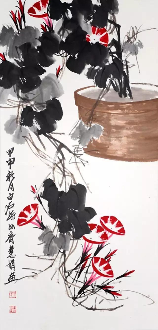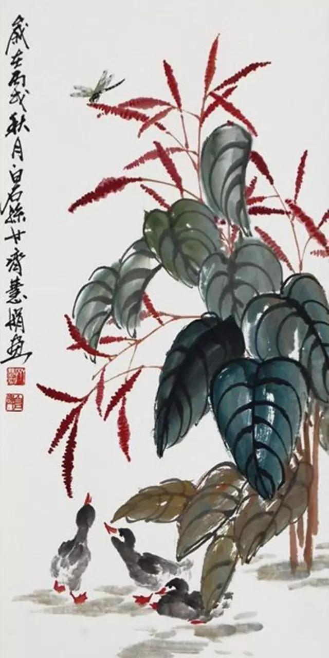 她继承了齐白石艺术中朴实奔放的气质与清新爽利的笔墨。挥毫泼墨的大写意花鸟作品中,充满了女性独有的真性情之流露,其中的向往与活泼令每个人动容。