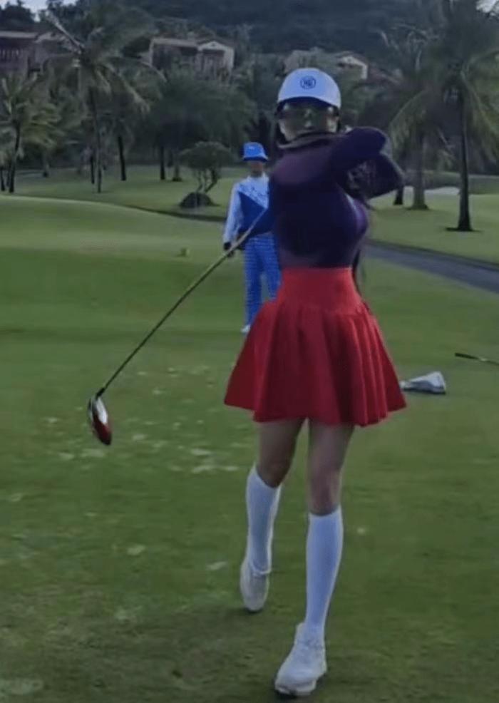 据悉,趁着假期,冉莹颖现身三亚度假,新动态中,冉莹颖现身高尔夫球场,大秀身姿。