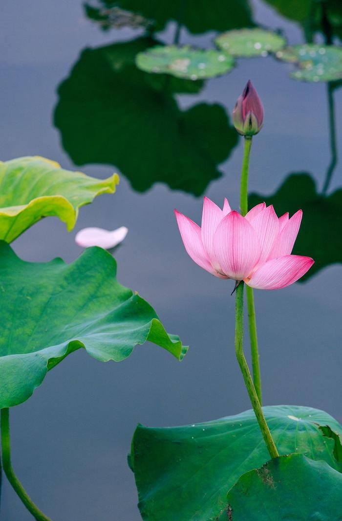 一阵风来,轻轻拂动荷叶,露珠在叶脉上打着滚,颇有一番“大珠小珠落玉盘”的意境。