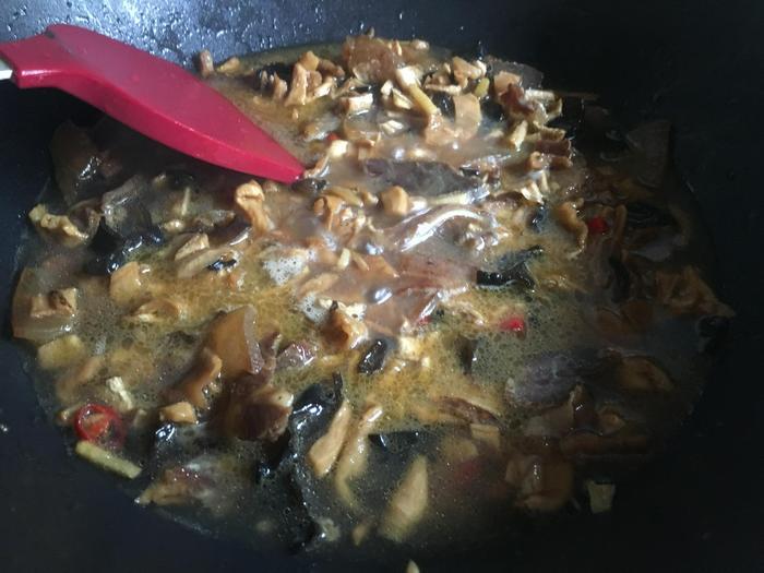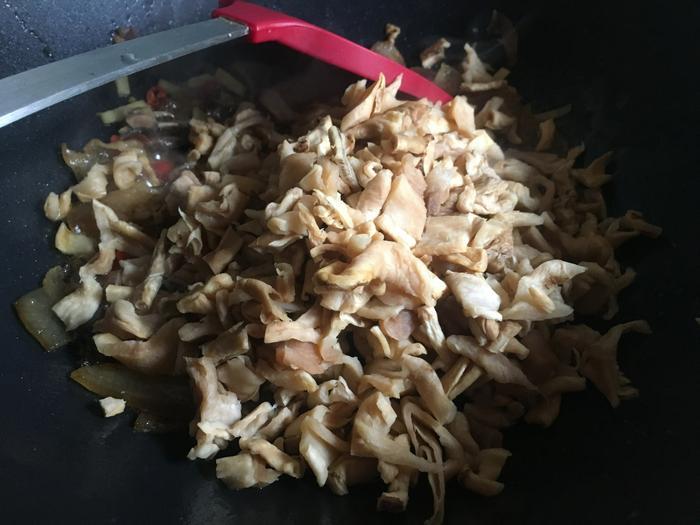 等焖煮到锅里面水分已经被收得差不多干了之后,加入适量的食盐进去,进行调味,然后翻炒均匀即可。