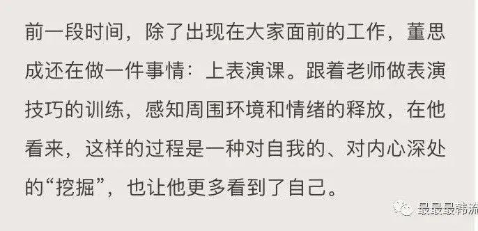 在工作之余,董思成还去了上表演课,来提高自己的演技。