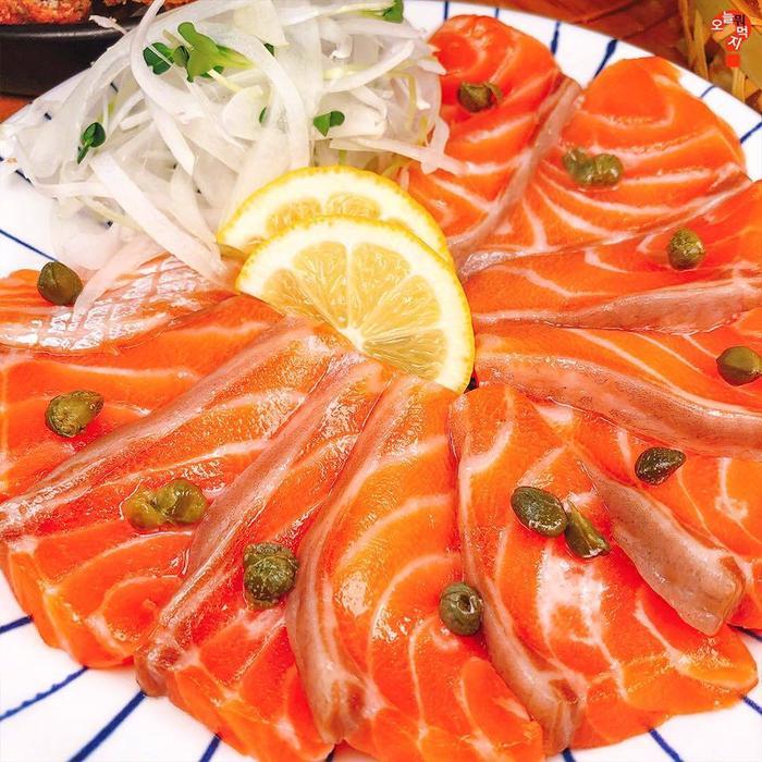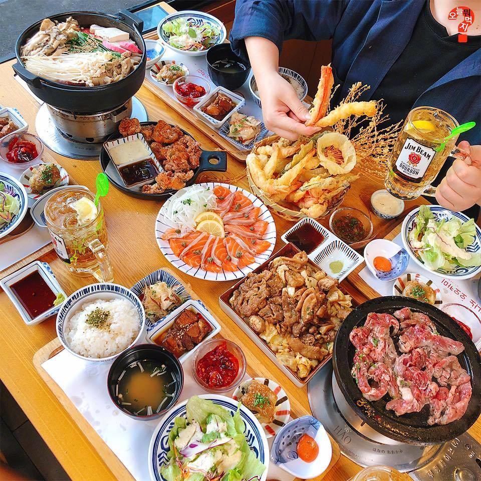 弘大日料店“하나노오오카미”,满满一桌子好吃哒!如果你不知道来他家该怎么点,那么点套餐就可以,有2人套餐、3人套餐和4人套餐,价格36000韩元起~如果单点的话,推荐你们一定要点“大阪牛肉火锅”,结合了日式料理的甜和韩式料理的辣,非常适合秋冬渐冷的天气吃哦!地址:首尔麻浦区西桥洞408-29