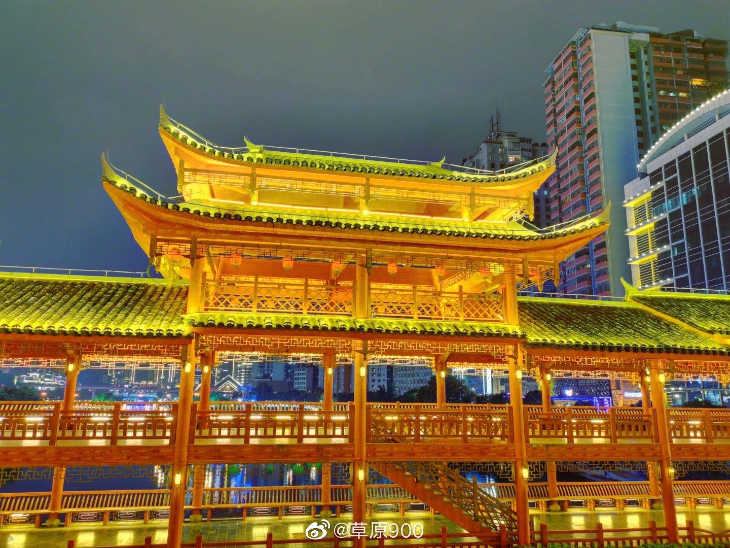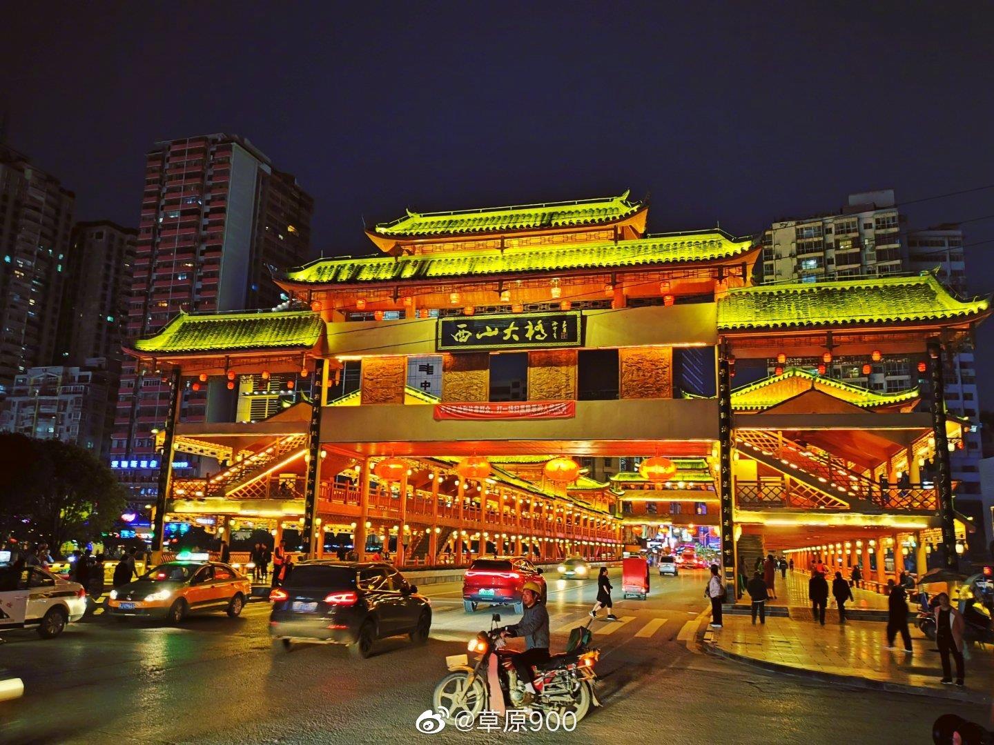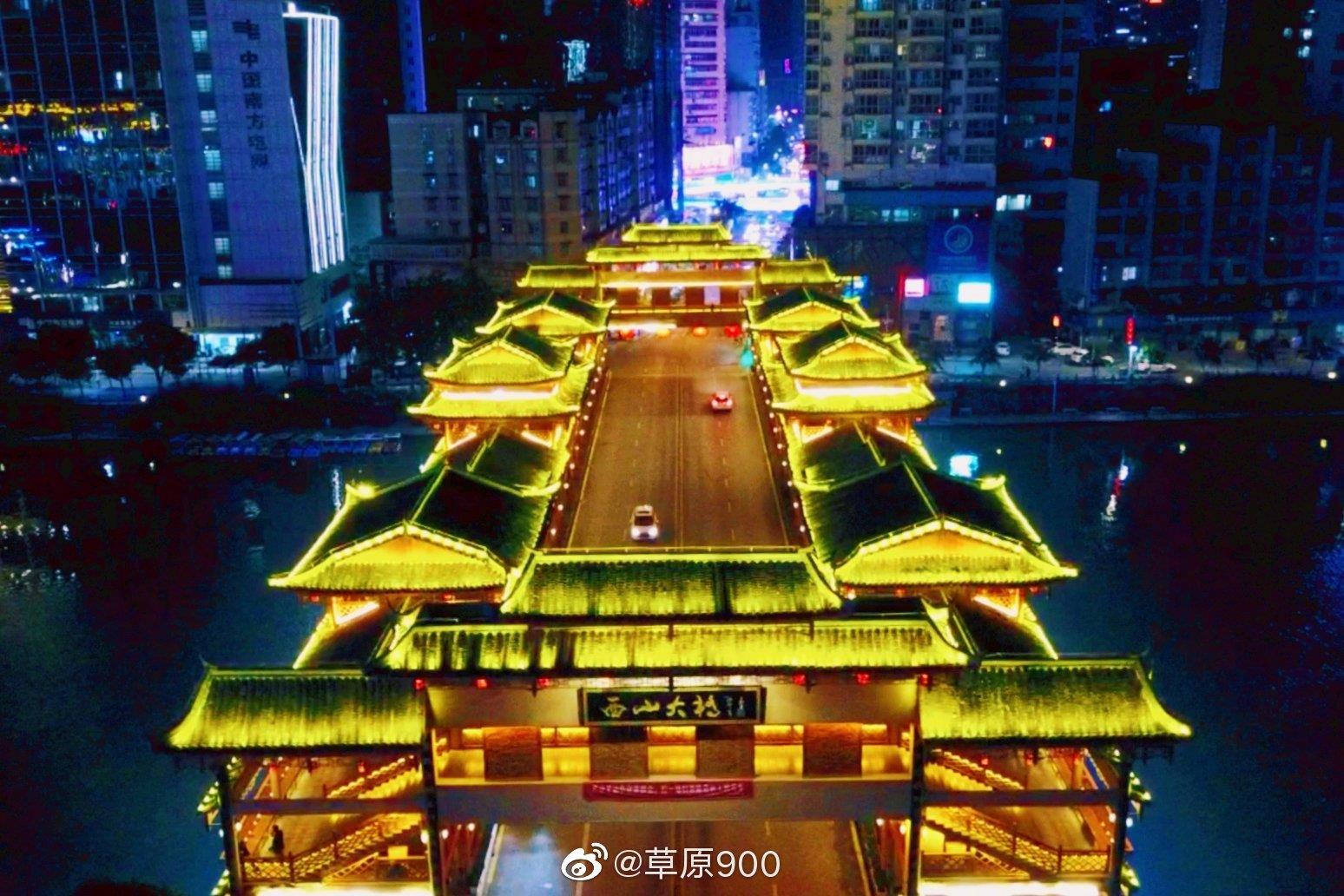 都匀市西山大桥建于1966年,是剑江河沿河两岸西山公园与城市中心区最为便捷的桥梁,外观古朴典雅,为黔南少数民族文化特色的风雨桥,也是“西山风雨桥”,为都匀城一道亮丽风景。西山大桥外部刷仿木漆,廊柱、栏杆等装饰均采用黄红色搭配,瓦面灰色小青瓦,屋脊白色防水涂料,色彩古朴美观。。