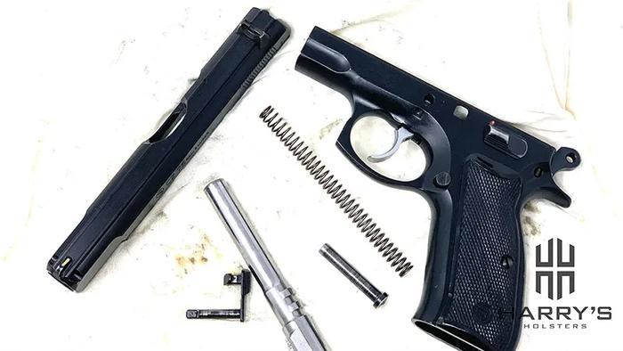 CZ75的底子其实是1935年的勃朗宁大威力手枪的底子,用的是枪管后坐原理+枪管偏移闭锁。闭锁方式上,和勃朗宁大威力手枪几乎一模一样。不仅如此,空仓挂机、保险位置和勃朗宁大威力手枪都很像,就连勃朗宁大威力手枪的外置抽壳钩,在CZ75身上也都有体现。这套设计,在当时已经是非常成熟了,CZ也是直接拿过来用了。