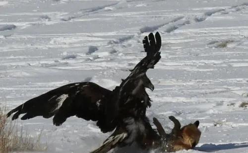 所以,在牧民中,拥有猎鹰的人家是非常少的,若是牧民发现周围有狼危害牲畜的时候,可以去请人家有猎鹰的牧民队伍过来帮忙解决狼对牛和羊的危害。蒙古草原上的野狼,猎鹰是它的天敌,一抓一个准,只要有狼出现,无处可逃。