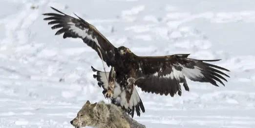 猎鹰是一种比草原狼还要凶猛的大型飞禽,能在天空中飞翔,是狼群无法比拟的。草原上的牧民,就通过寻找野鹰,利用它的优势对付草原狼。