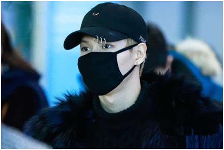 韩星SHINee李泰民全黑武装机场秀。帽子上的圆圈是亮点!