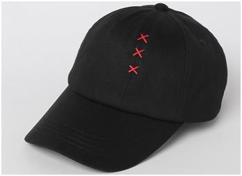 这款帽子自然弧度帽顶,一贯的简约风格,帽檐上三个小圆圈和帽子上的图案相得映彰。