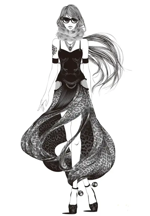 左手臂上的数根套环,黑色的外套以及黄白相间的短裙是lily的御姐属性的最好证明。而这些服饰闪着的金属色泽,又对应了LILY“摇滚女王”的属性!