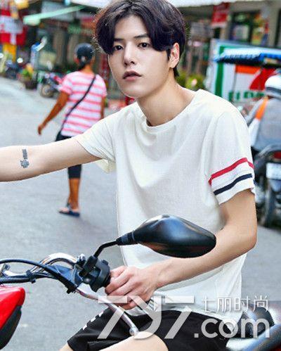 清新系列的这一款男生发型可先显青春气息了,两边头发剪短既显清爽又能带出好轮廓,再配合一款齐刘海,轻轻松松就修饰了发际线高的不足,而且倍显暖男气质。