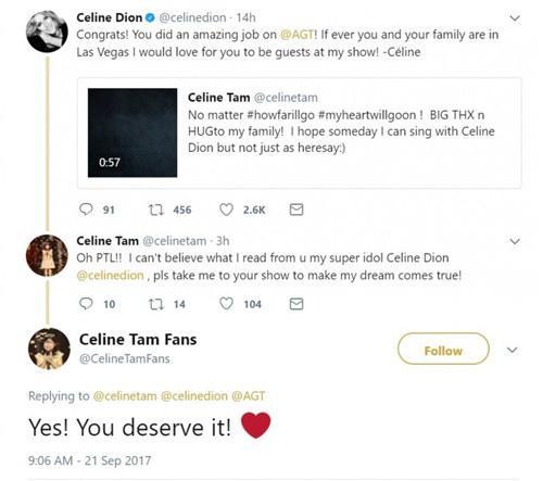 据《KUGOU.TV》报道,席琳狄翁昨(20日)在推特转发谭芷昀贴文,大赞其在《美国达人秀》里出色的表现,随后公开提出邀约,“如果妳和家人去拉斯维加斯,我希望邀请妳当我演唱会的表演嘉宾”,谭芷昀看到后,惊讶直呼:“请带我到妳的演唱会。”虽未能成功晋级,但能获偶像赏识,也算是梦想成真,让许多网友羡慕不已。