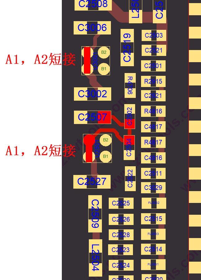 4.检查J3001的供电管U3001,拆掉短接。副摄像头供电U2501也可以通过此方法短接。