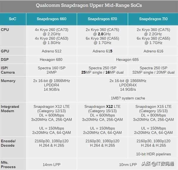 前面IT数码通小编为大家带来了有关骁龙660和670的对比情况,可以在下方相关文章进行查看。接下来我们来看看骁龙670和骁龙710的对比情况,具体如下。