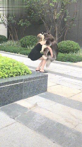 瘦瘦的小姐姐轻松抱起阿拉,网友:这就是平时连水都拧不开的女生