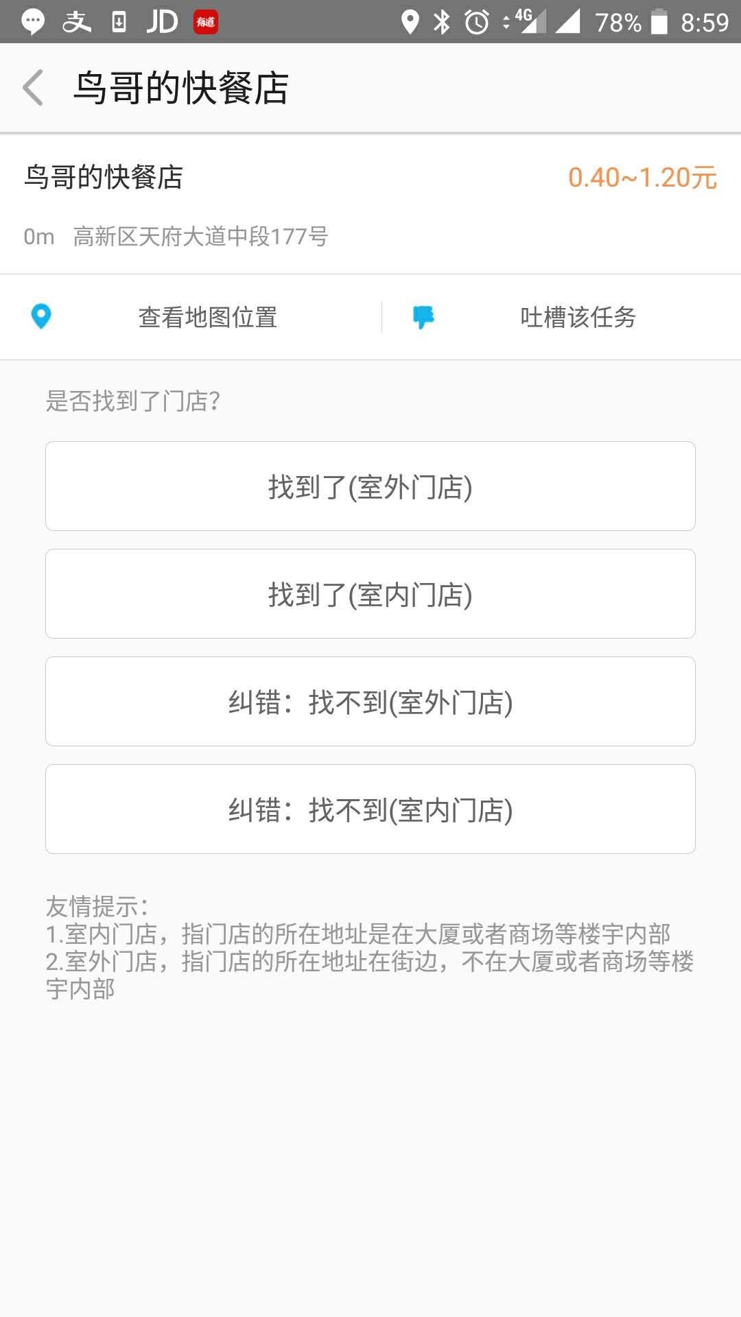 可以看到,美团拍店的佣金基本都在0.4-1.2之间,而且任务相对简单,不像高德淘金,需要走很长一截路。