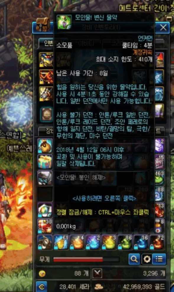 到现在为止基本每月的活动都会赠送“大眼仔”,也是为玩家升级小号提供了不少的便利,节省了时间,小六本来以为“大眼仔”已经非常方便了,但是没事想到韩服竟然推出了自动刷图的药水,在韩服4月1日愚人节活动中,官方曾经发公告会推出“扫荡券”,售价4亿金币,就如同国服推出的愚人节活动一样,肯定没有人相信,但是愚人节活动却出了另一种药水。