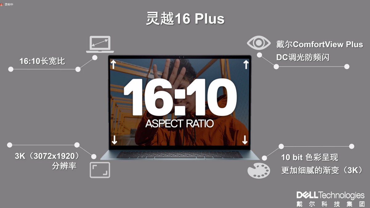 灵越系列新产品以16:10 长宽比和四边窄边框为用户提供更大的视野空间和身临其境的屏幕体验。产品配置可选高分辨率屏幕(2.2K、2.5K、3K) 与高清FHD+分辨率面板、DC调光和德国莱茵认证的防蓝光解决方案,以及可供选择的 ComfortView Plus 硬件,即使长时间使用屏幕,也能确保创作者的眼部舒适。