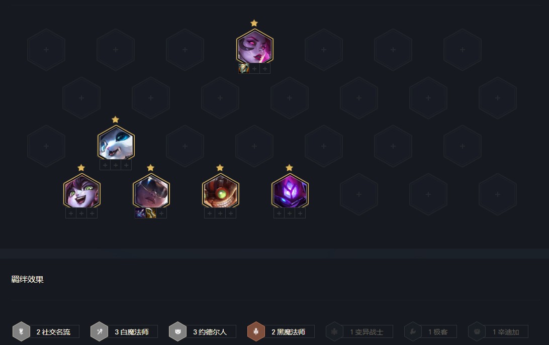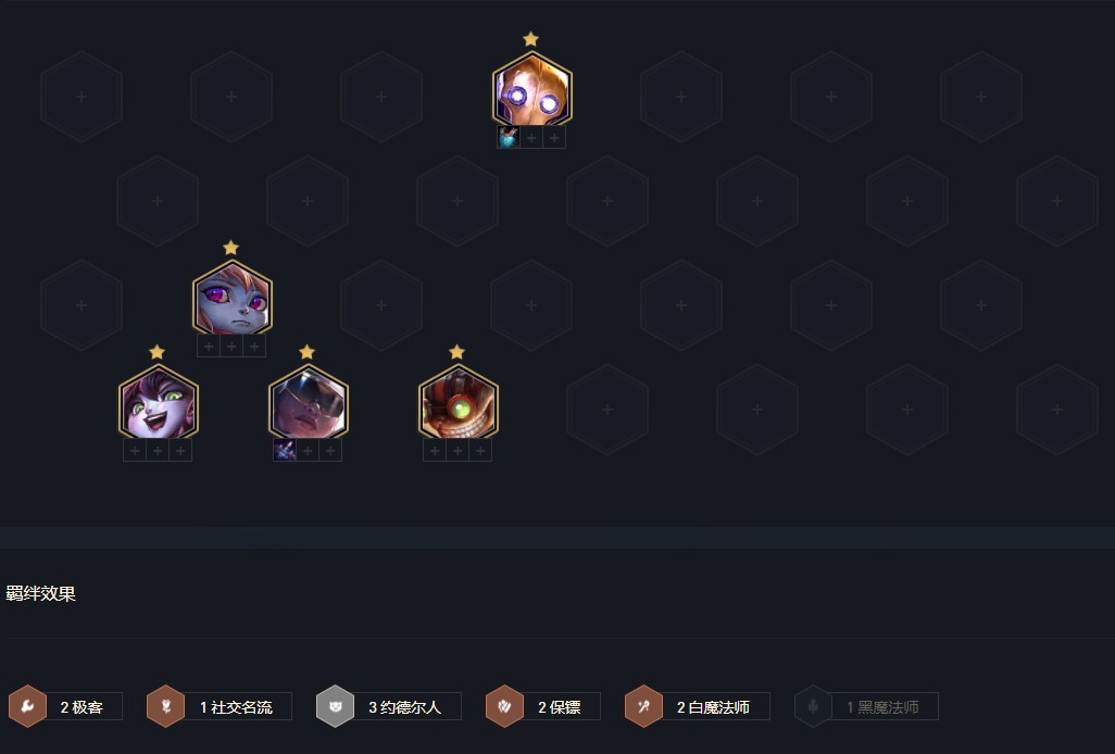 2 阶段 :2-1升4,2-5升5人,优先看名流格位置在哪,如果位置不优质,建议考虑其他阵容,阵容对装备要求较高,装备较差可考虑卖3波血,2-5后转连胜,打工阵容看情况选择,极客保镖+赛娜最优,其他辛迪加狙神,极客发明等都可。