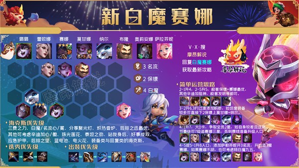 阵容另外一个重点就是,4白魔是永远大于名流的,这套阵容更多是需要白魔的续航,进而提升阵容坦度,而不是赛娜去单C,这点大家一定要注意。
