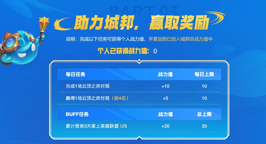 完成以下任务可获得个人战力值,并累加到已加入城邦总战力值中