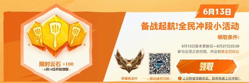 参与云顶之弈对局,并达到黄金四段位即可领取限时云石X100