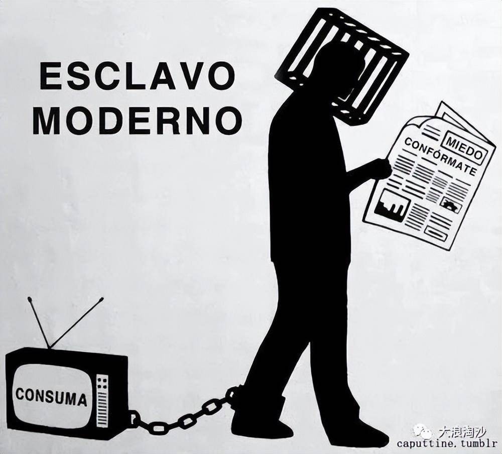 资本主义的精神奴役不是暴力的手段,但是一只“看不见的手”无时无刻都在掌控秩序。就像居伊·德波所描述的景观社会:它既不是暴力性的政治意识形态,也不是商业过程中看得见的强买强卖,而是“在直接的暴力之外将潜在地具有政治的、批判的和创造性能力的人类归属于思想和行动的边缘的所有方法和手段”。这一种控制不是枪炮、监狱、皮鞭或秘密警察的压迫,而是一种更温和、更便捷、更有效的手段,让人匍匐于消费幻象所构建的皇帝的新装与通天塔中,自觉自愿地奉献着自己仅有的剩余价值。