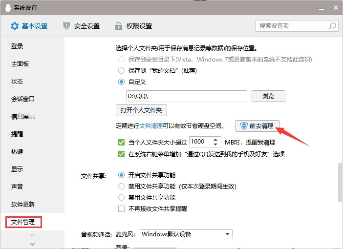 打开QQ设置页面,点击「文件管理」选择「前去清理」,然后按自己的需求删除不需要的数据图片即可。