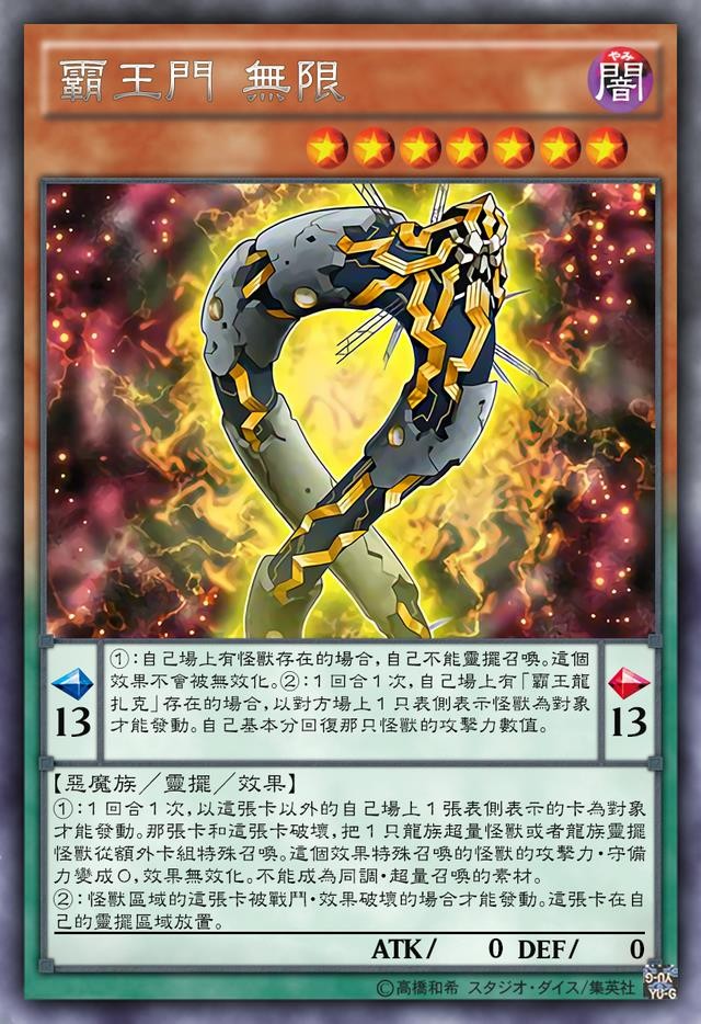 这一排密密麻麻的效果,看着就很说书啊=-=结合了强大的龙族、灵摆、融合甚至于同调、XYZ等的终极怪兽,可惜不能叠加。