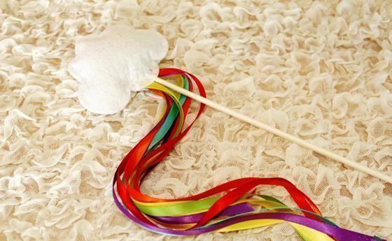 第五步:把云朵用热胶粘在棒棒的顶端。