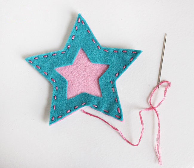 将魔法棒的顶端固定在缝制好的星星下方,从没有被封起来的口子穿进去,固定好之后完成啦!