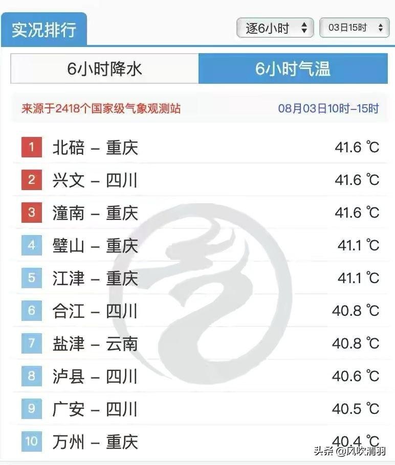 天气的炎热好在持续中,这些重庆最热的区域基本都是和四川接壤,所以,四川入选的城市也不少,在炎热的夏季一定要做好防暑降温工作,超过40度尽量不要扛着烈日外出工作,对此,你还有什么想说的吗?