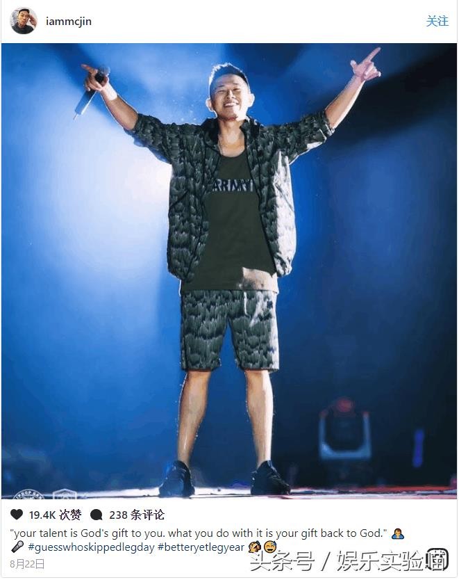 MC Jin年轻时已经是亚洲说唱歌手第一人,曾击败过黑人选手。即使现在因为《中国有嘻哈》而令他在国内红了,他还是无忘初心:“我不是什么大神,我只是简单的喜欢嘻哈的人!