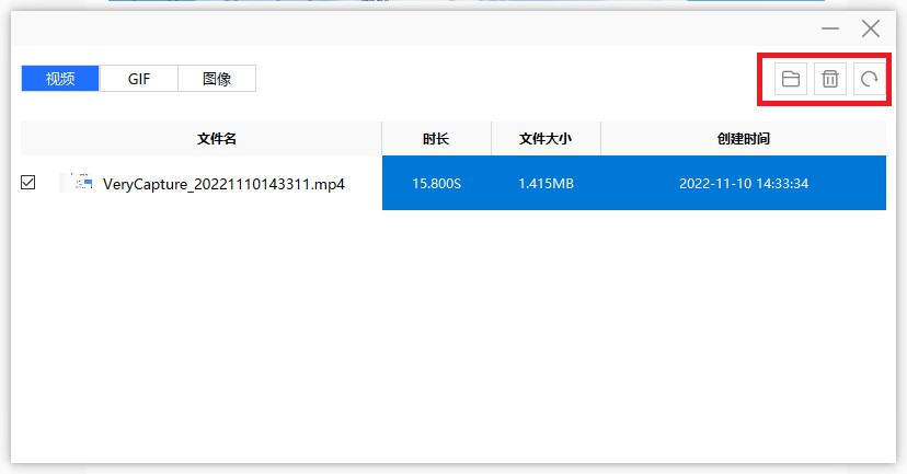 录制过程中我们可以点击桌面上的按键控制录制暂停结束,点击结束之后会自动打开录制列表,可以选择打开文件夹或是删除。