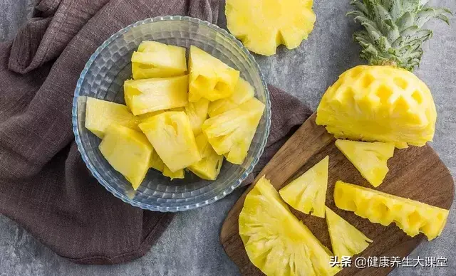 菠萝中含有的菠萝蛋白酶能帮助消化蛋白质,补充人体内消化酶的不足,增强消化功能。李时珍在《本草纲目》中也肯定,菠萝可以健脾胃、固元气。餐后吃些菠萝,能开胃顺气,解油腻,助消化。
