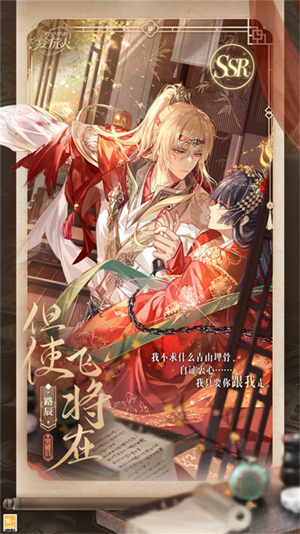 2、活动期间,艾因SSR[生死与君同]、路辰SSR[但使飞将在]、罗夏SSR[挥洒合昏昼]、司岚SSR[照室红龙鸾]、叶瑄SSR[若算机筹处]获得概率提升。
