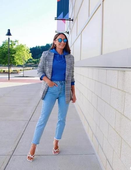 最后,需要提醒的是,卫衣选择可以宽松,但切忌过于松垮,或者直接将太嘻哈或休闲的卫衣套装整身穿,体验一下街头感年轻人的风格可以,但作为上班族日常还是显得太过随意,作为通勤搭配,依然还是要保持利落线条和相对的合身感,才能凸显职业女性的气质。