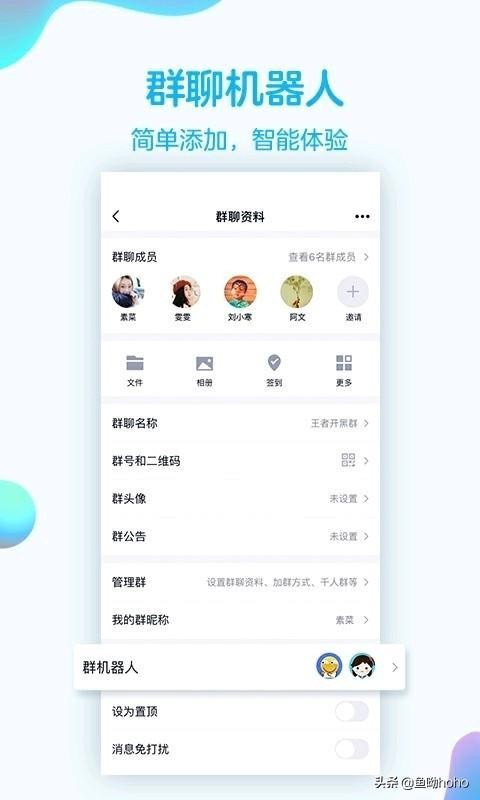 ▶ 群聊支持添加机器人,群主/管理员也有贴心小助理;