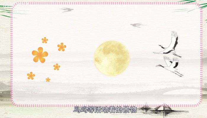 《鸟鸣涧》描绘山间春夜中幽静而美丽的景色,侧重于表现夜间春山的宁静幽美。诗人用花落、月出、鸟鸣等活动着的景物,突出地显示了月夜春山的幽静,取得了以动衬静的艺术效果,生动地勾勒出一幅“鸟鸣山更幽”的诗情画意图。