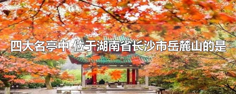 四大名亭中,位于湖南省长沙市岳麓山的是爱晚亭。四大名亭是我国古代因文人雅士的诗歌、文章而闻名的景点,分别是滁州的醉翁亭、杭州的湖心亭、北京的陶然亭和长沙的爱晚亭。